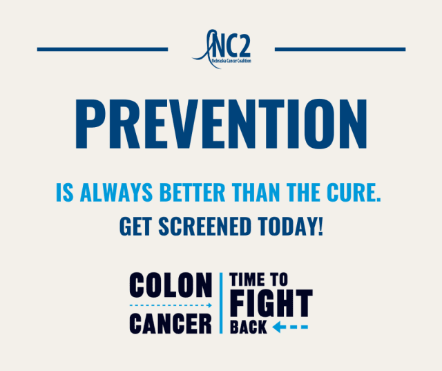“Colon cancer screening is critical, as symptoms often only become prevalent in later stages of the disease when it’s much more difficult to fight back. It’s important for Nebraskans ages 45 and older speak with their health care provider about screening as soon as possible, especially those who have postponed appointments because of the pandemic,” said NC2 President Dr. Alan Thorson. “Colon cancer is preventable, treatable and beatable, but you don’t know if you don’t go.”